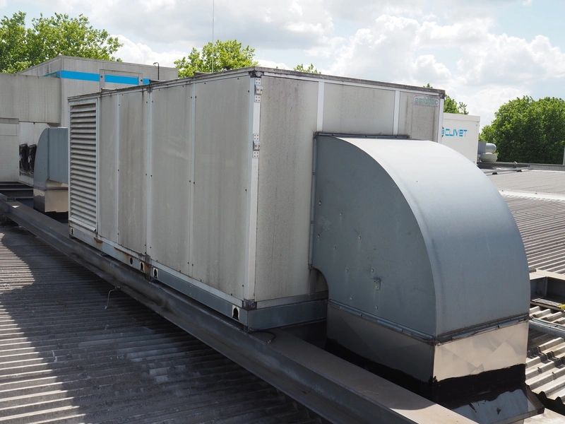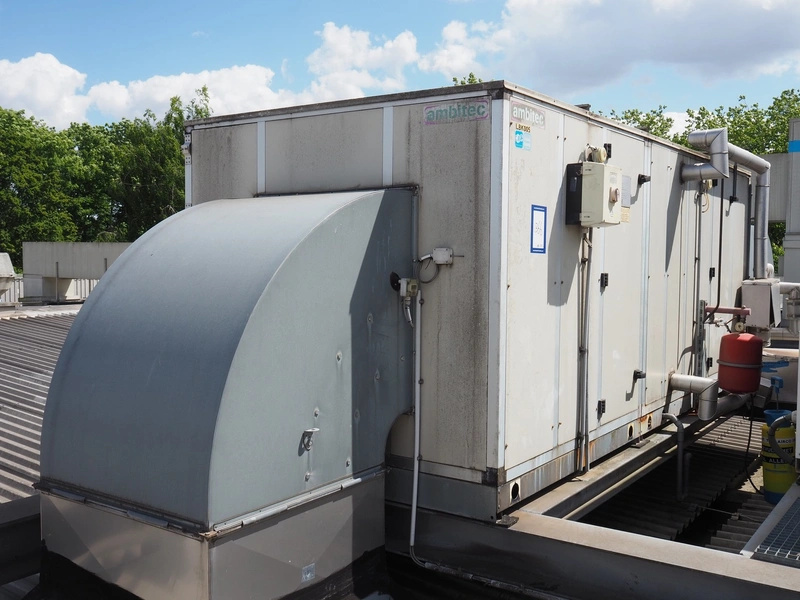 Ambitec BV air handling unit, type: FTP 240, serial number: 072213 036513, 400 V, 3 Ph, 50 Hz, 11 kW, weight: 1255 kg, air flow: 20000 m³/h, dimensions: 4600 mm x 2100 mm x 1800 mm.