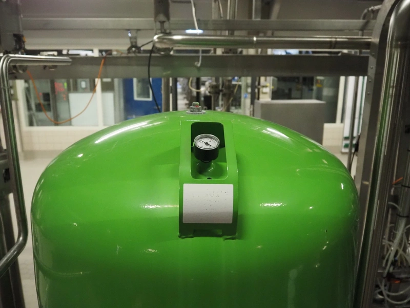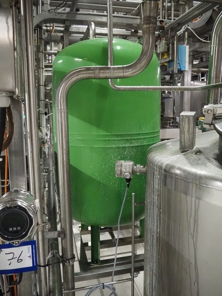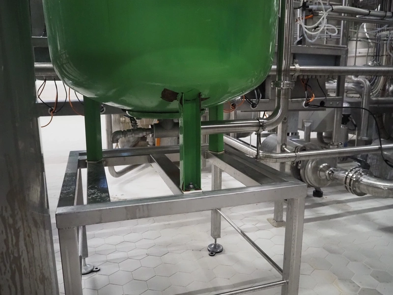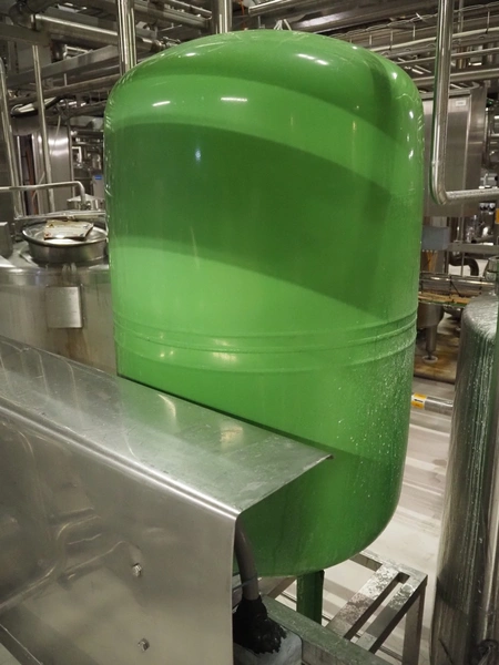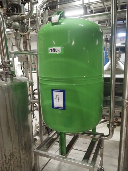 Reflex steel pressure vessel on s/s frame, dimensions tank: ø 600 mm x 1050 mm, total dimensions: 700 mm x 700 mm x 2030 mm.