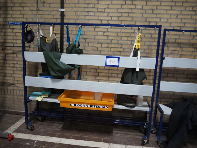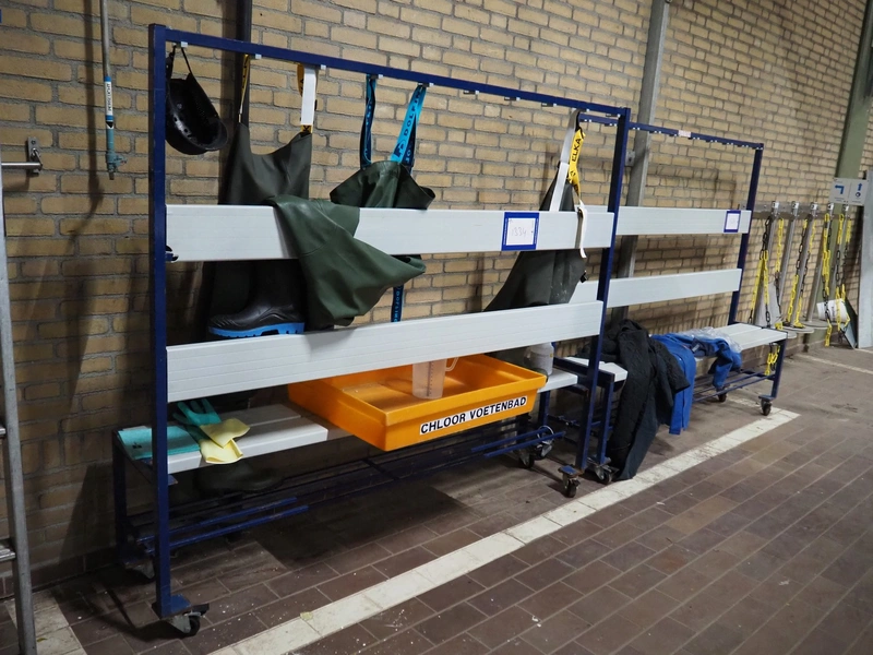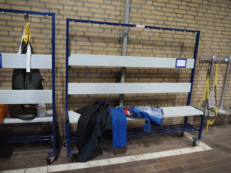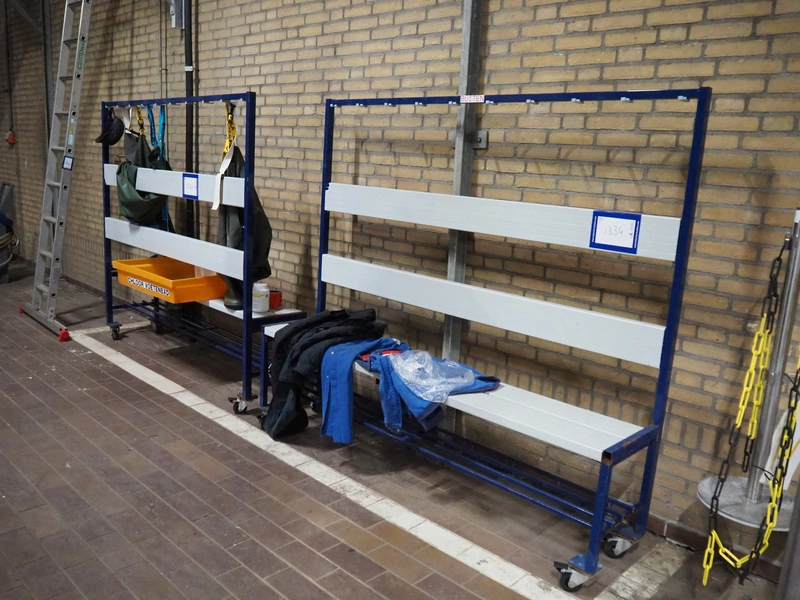 2 mobile steel benches, dimensions: (2x) 2000 mm x 400 mm x 1760 mm.