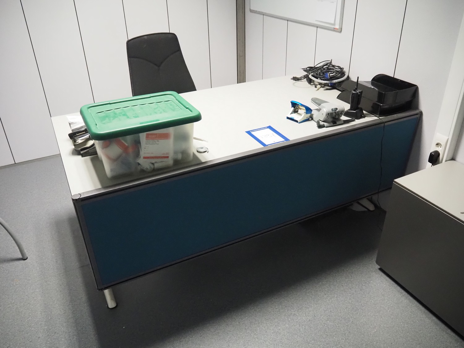 Office inventory consisting of desk, dimensions: 900 mm x 1800 mm x 750 mm, 2 steel cabinets, dimensions: 430 mm x 920 mm x 1950 mm x 500 mm x 1160 mm x 1800 mm, 2 whiteboards, dimensions: (2x) 1200 mm x 910 mm, 2 drawer cabinets, dimensions: (2x) 770 mm x 420 mm x 560 mm, chairs.
