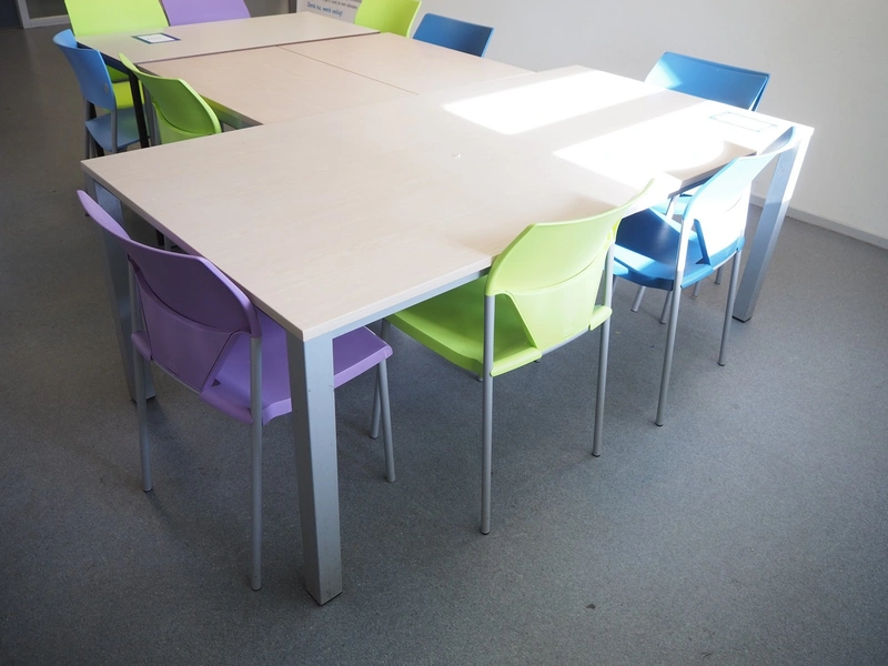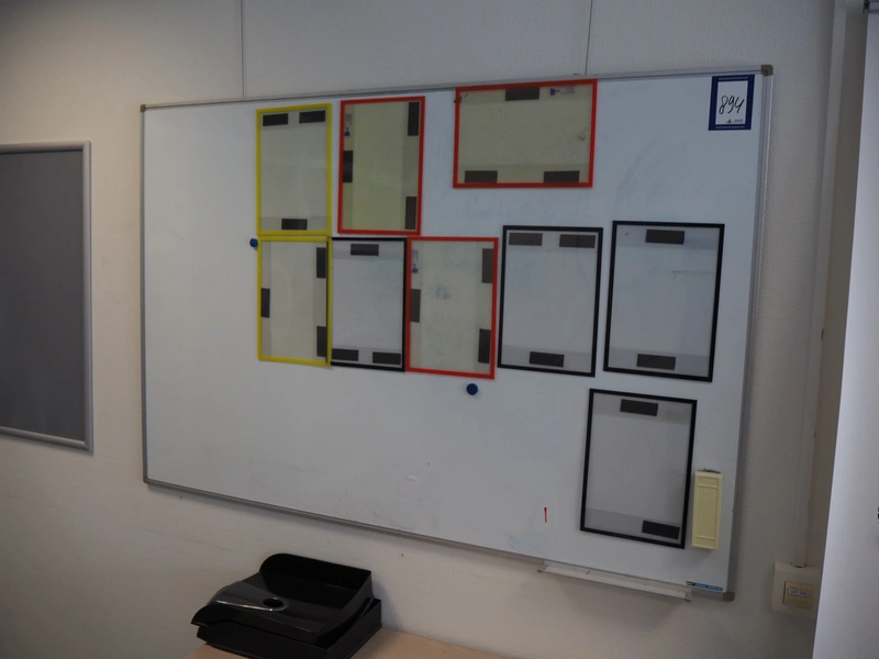 Canteen inventory consisting of: 5 tables, dimensions: (3x) 900 mm x 600 mm x 750 mm, (1x) 1200 mm x 600 mm x 750 mm and (1x) 2000 mm x 1000 mm x 750 mm, 11 chairs, cup holder, dimensions: 900 mm x 660 mm x 850 mm and 5 announcement boards.