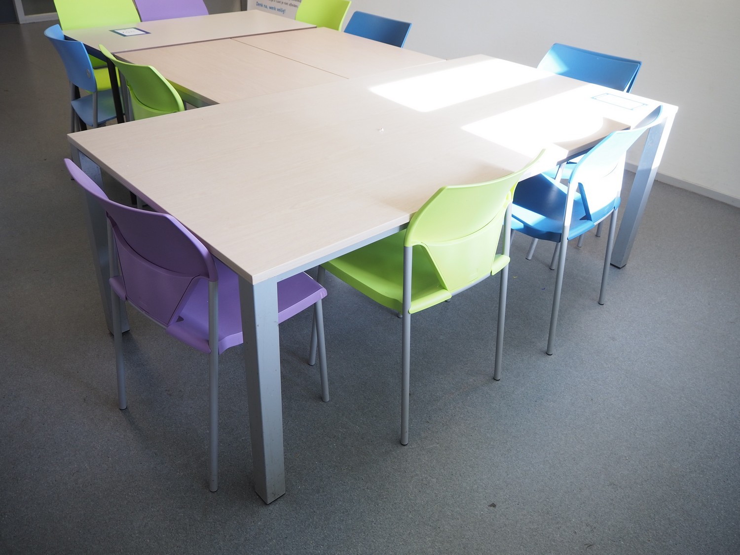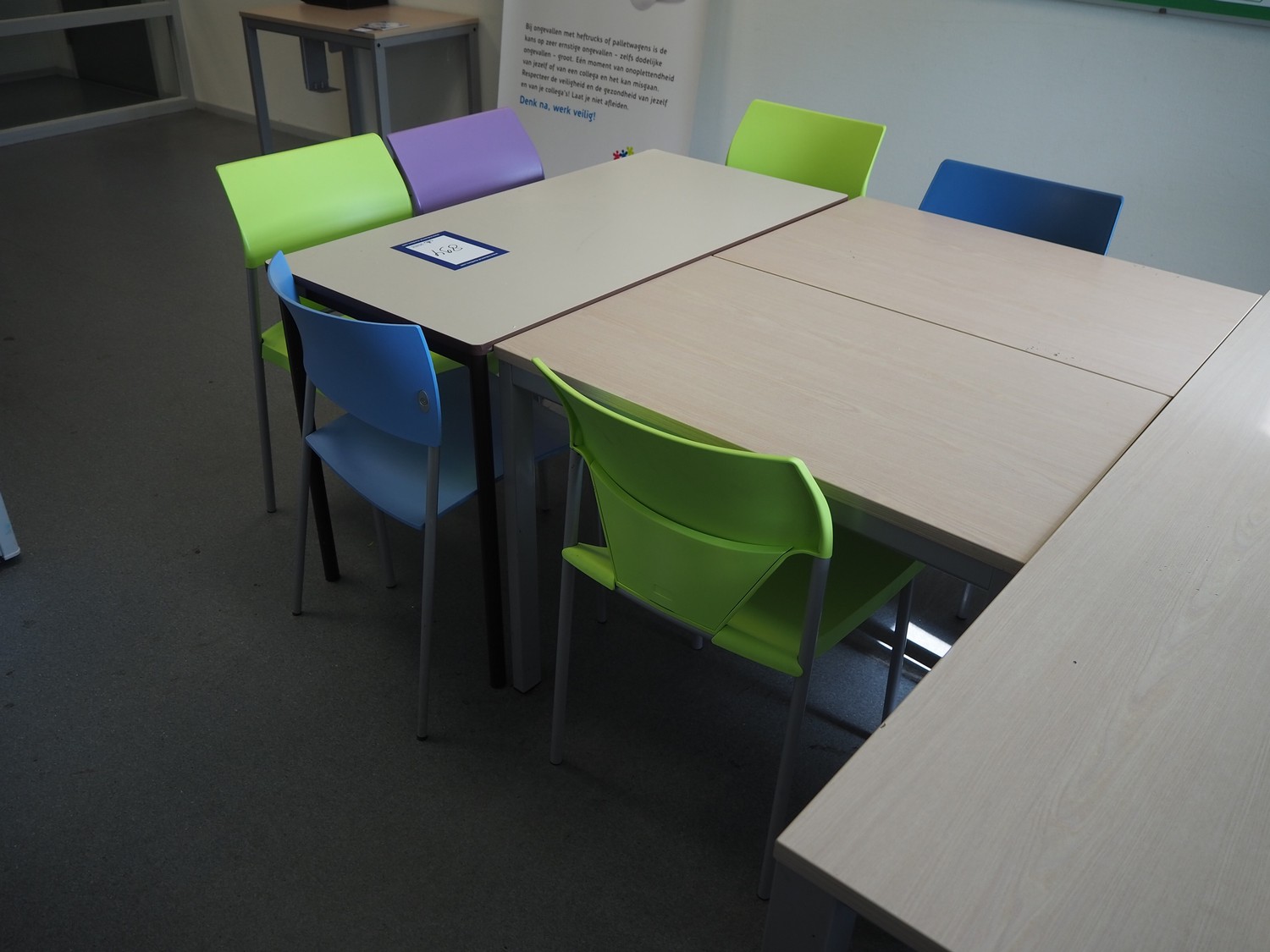 Canteen inventory consisting of: 5 tables, dimensions: (3x) 900 mm x 600 mm x 750 mm, (1x) 1200 mm x 600 mm x 750 mm and (1x) 2000 mm x 1000 mm x 750 mm, 11 chairs, cup holder, dimensions: 900 mm x 660 mm x 850 mm and 5 announcement boards.