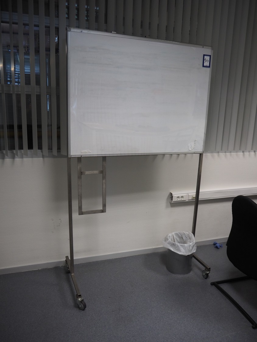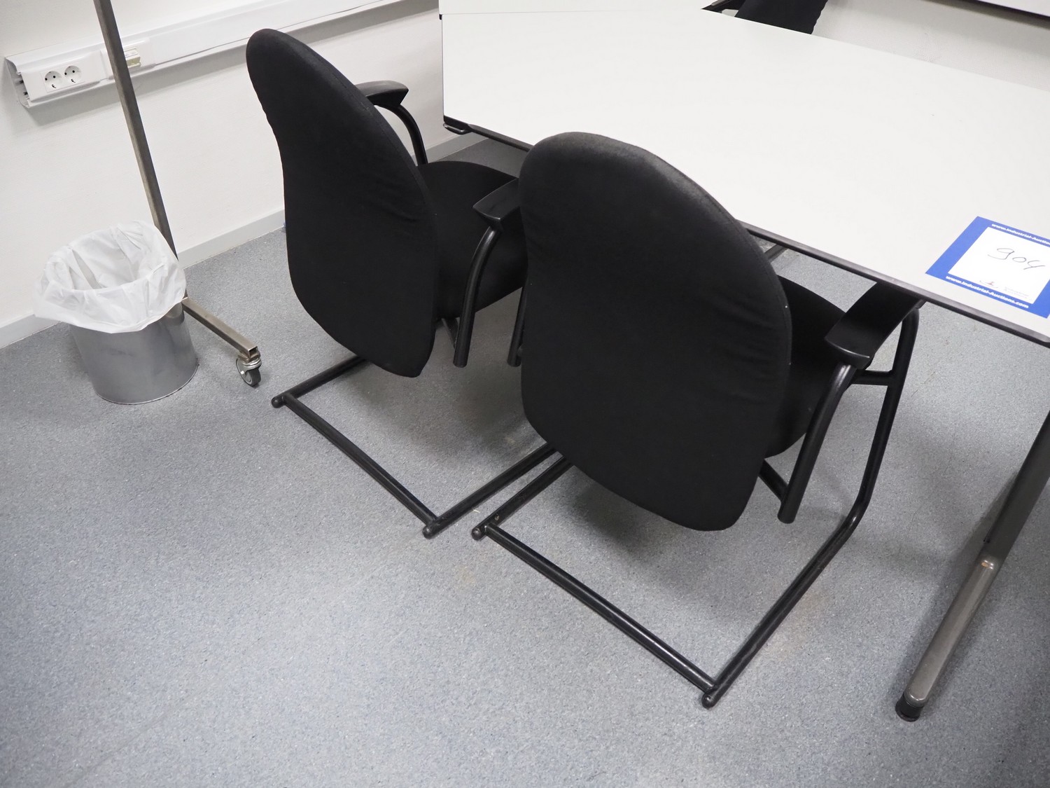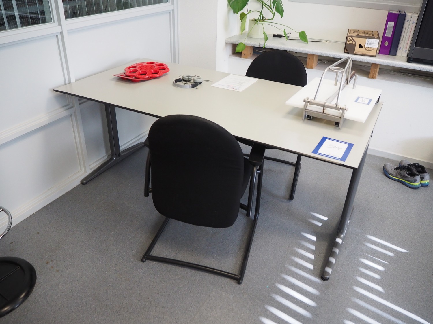 Office inventory, consisting of: 3 desks, dimensions: (2x) 1800 mm x 1600 mm x 770 mm and (1x) 1800 mm x 900 mm x 770 mm, 6 chairs, 1 meeting table, dimensions: 2000 mm x 1200 mm x 1100 mm, 1 whiteboard, 1 tv and 4 cabinets, dimensions: (3x) 750 mm x 430 mm x 530 mm and (1x) 1200 mm x 430 mm x 780 mm.