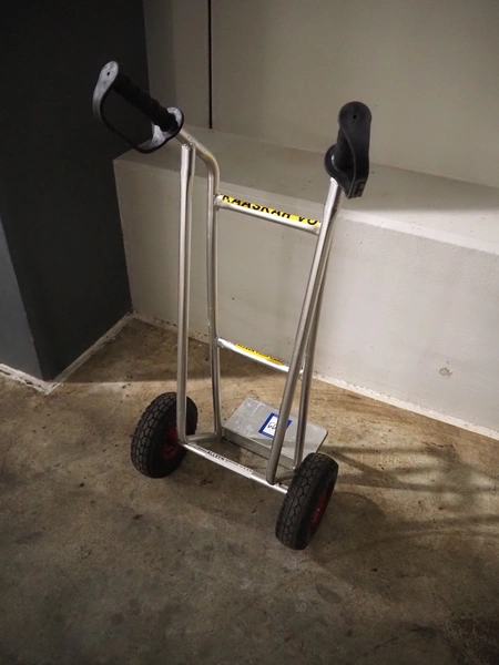 Aluminium trolley, dimensions: 550 mm x 500 mm x 1150 mm.
