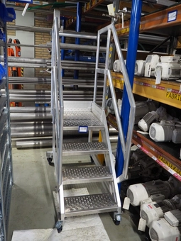 Mobile aluminium platform, s/s steps, platform height: 800 mm, total dimensions: 1300 mm x 690 mm x 1900 mm.0 bidsLot is closed -