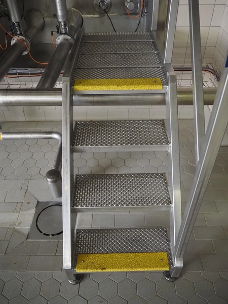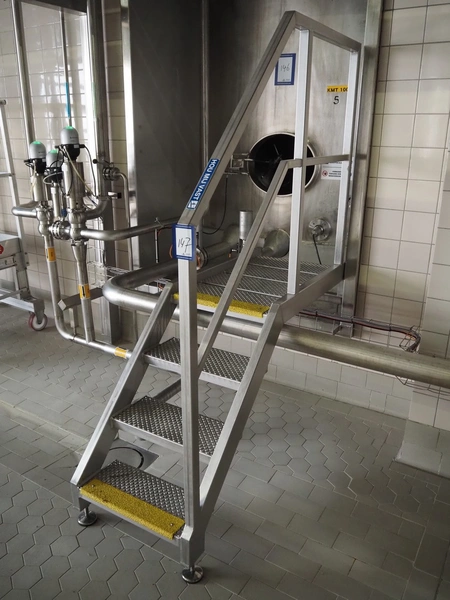 S/s platform with stairs, dimensions: 1550 mm x 580 mm x 1950 mm.