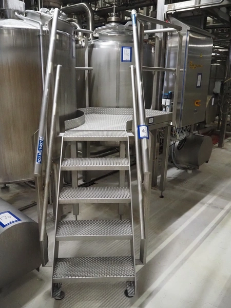 S/s platform with stairs, working height: 1100 mm, total dimensions: 1900 mm x 2100 mm x 2150 mm.
