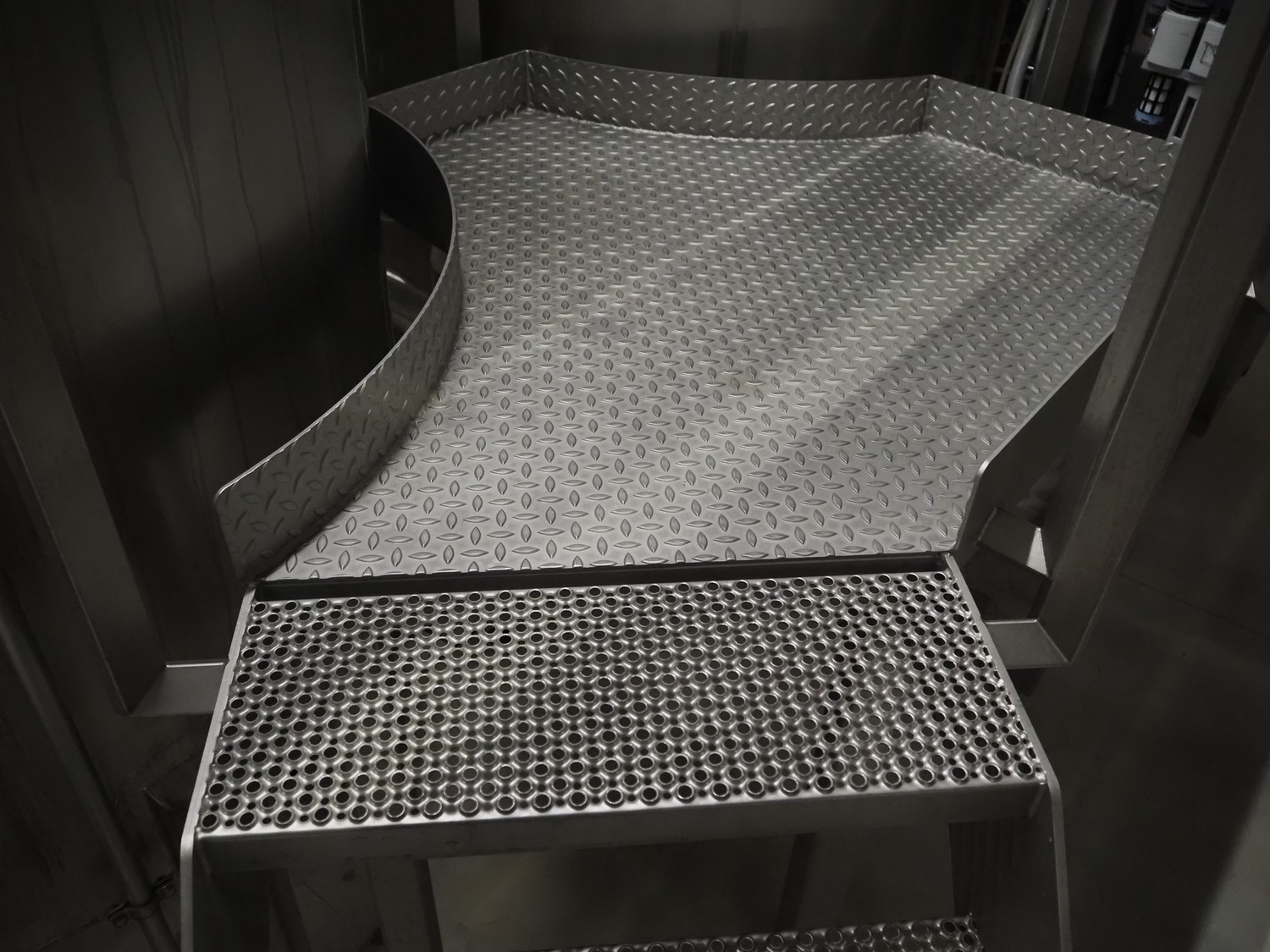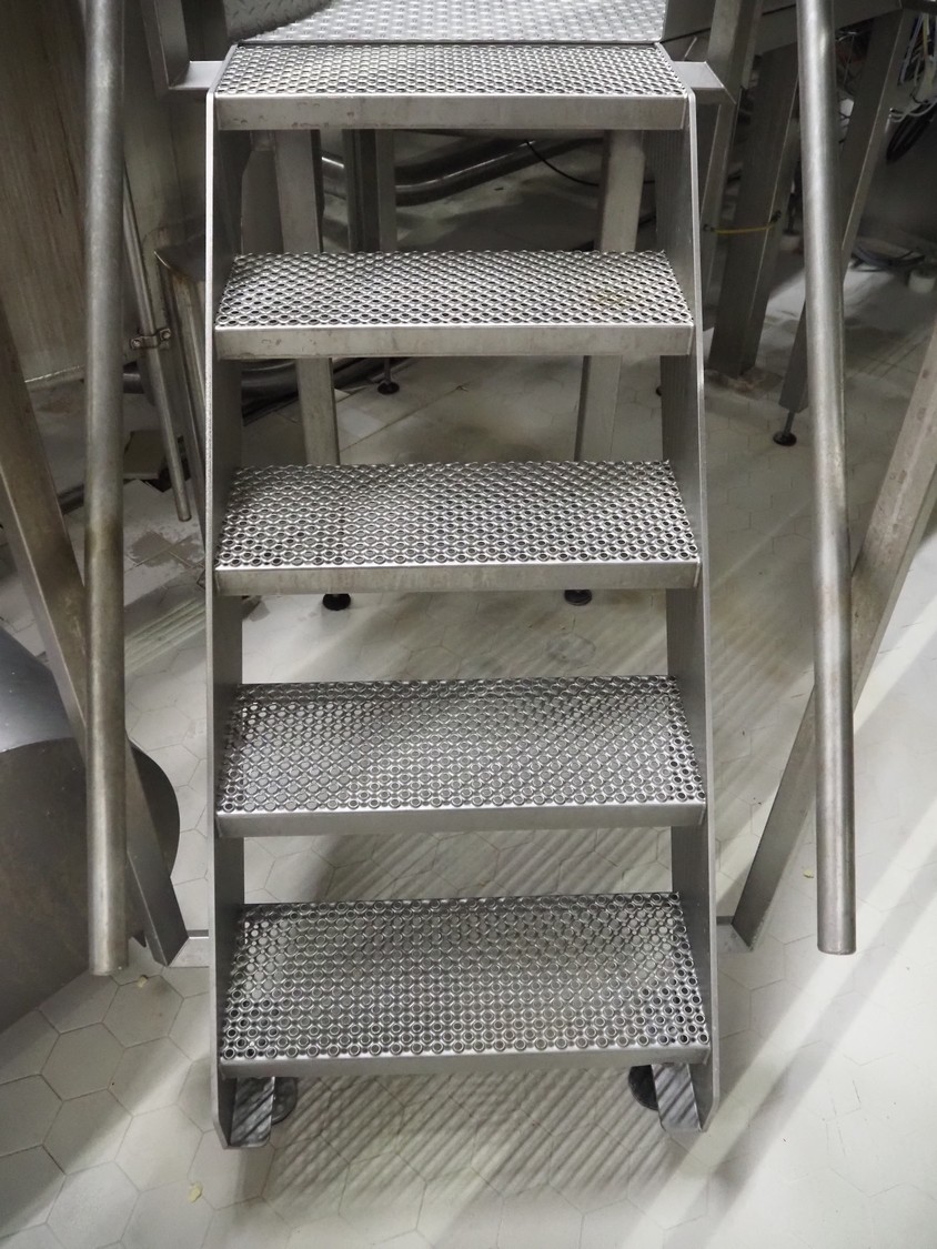 S/s platform with stairs, working height: 1100 mm, total dimensions: 1900 mm x 2100 mm x 2150 mm.