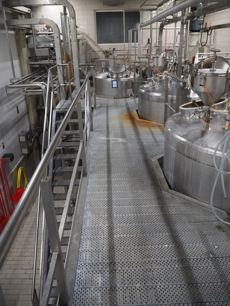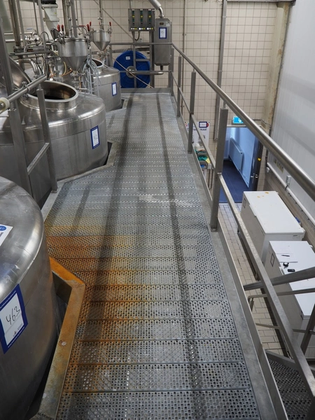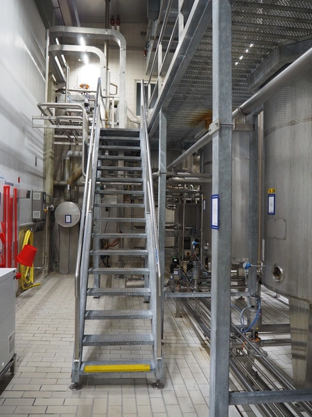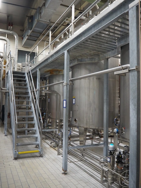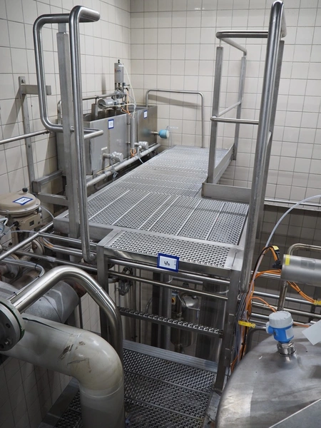 Steel platform with stairs and s/s top, dimensions: 10200 mm x 3700 mm x 4800 mm.