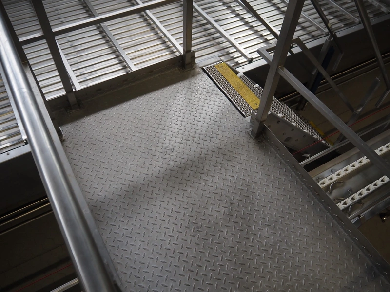 S/s platform with double stairs, dimensions: 4050 mm x 2000 mm x 2550 mm.