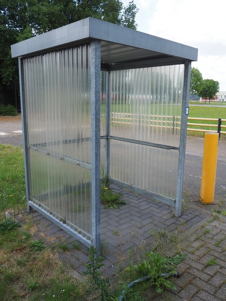 Shed, galvanised steel frame, plastic plates, dimensions: 1550 mm x 1550 mm x 2240 mm.