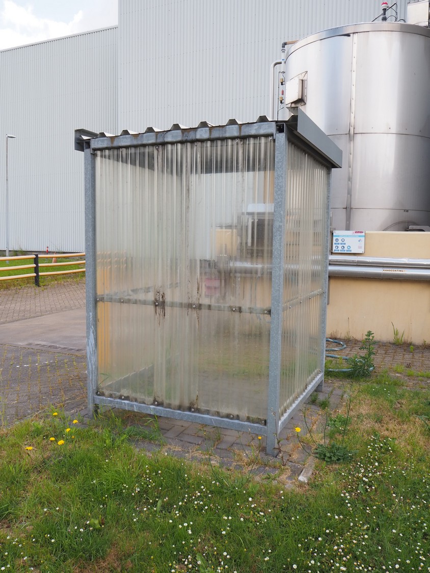 Shed, galvanised steel frame, plastic plates, dimensions: 1550 mm x 1550 mm x 2240 mm.