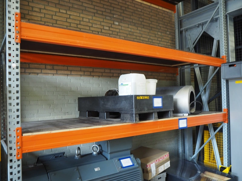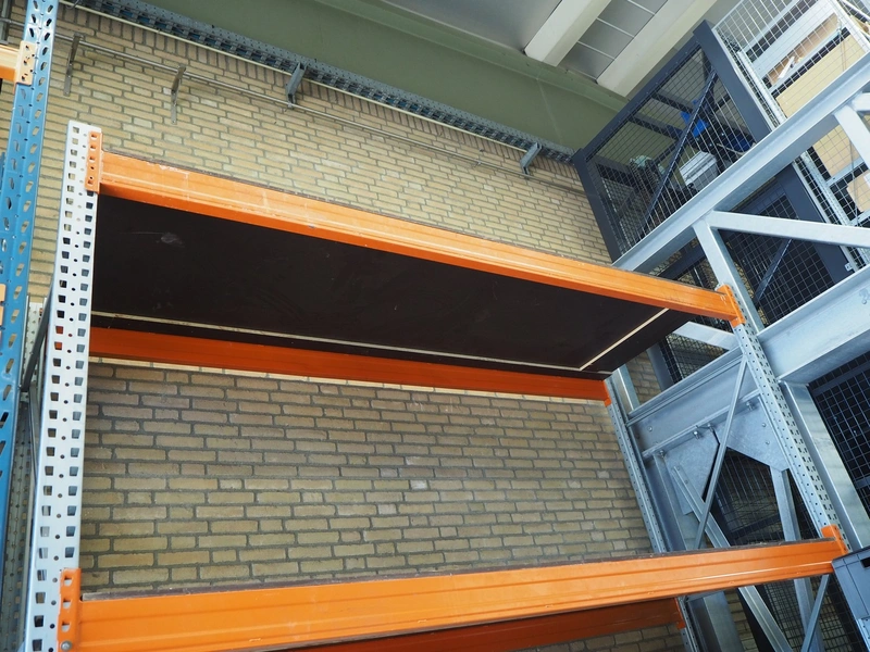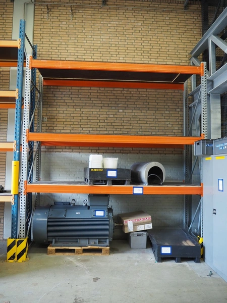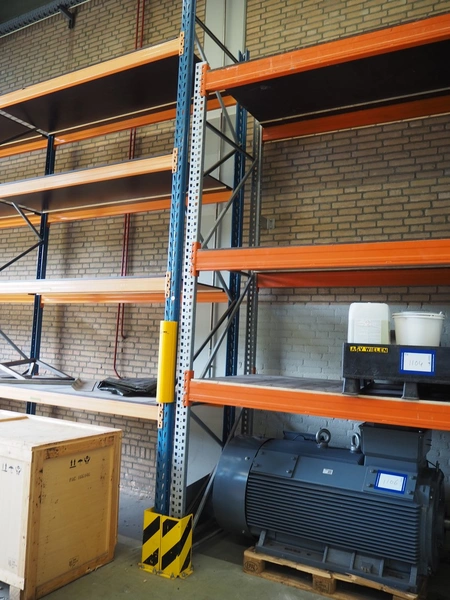 Steel pallet rack, consisting of: 2 uprights and 6 beams, dimensions uprights: (2x) 1100 mm x 3800 mm, beam width: (6x) 3300 mm.