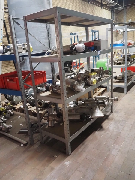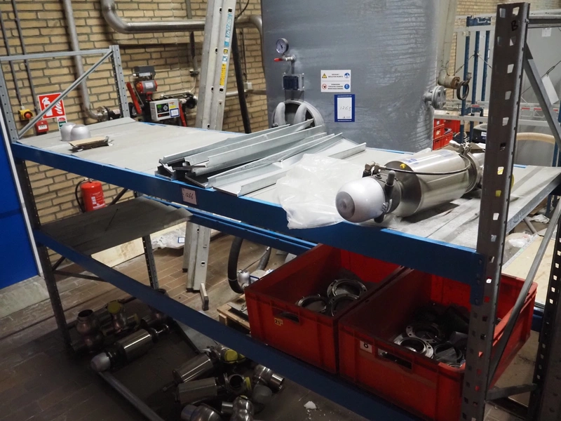 2 steel racks, dimensions: 830 mm x 2750 mm x 2000 mm, 600 mm x 1700 mm x 1970 mm. Including content.