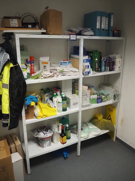 Steel rack, dimensions: 350 mm x 1600 mm x 1820 mm. Without content.