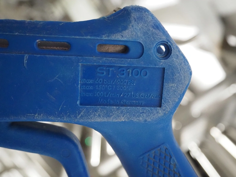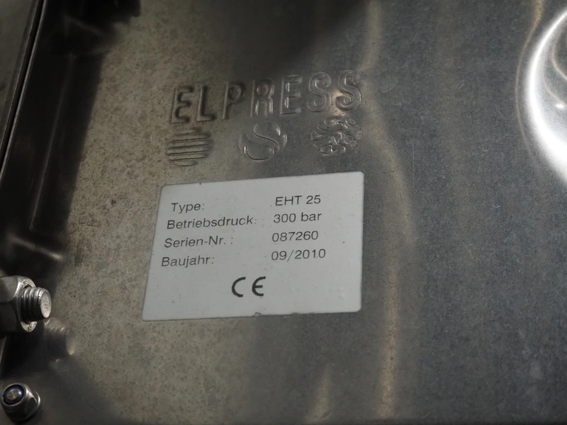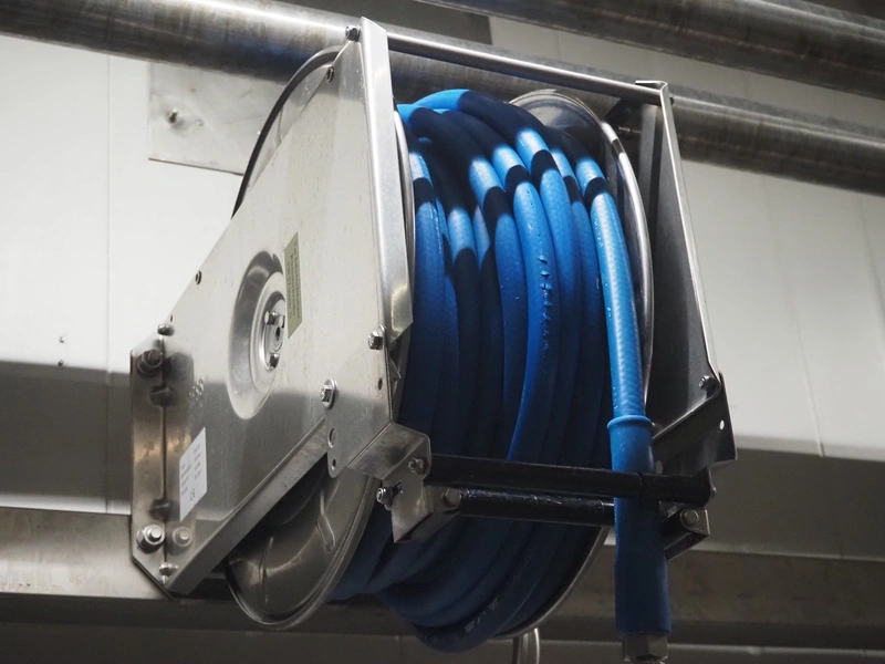 Elpress s/s hose reel with plastic hose and spray pistol, type: EHT 25, serial number: 087260, year of construction: 2010, dimensions: 550 mm x 320 mm x 600 mm.