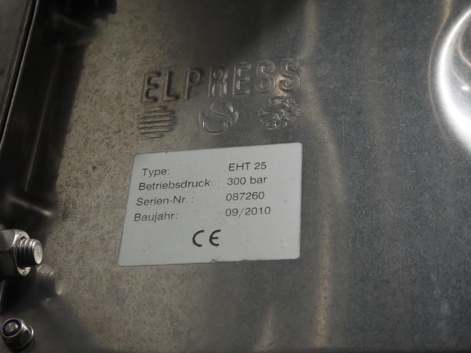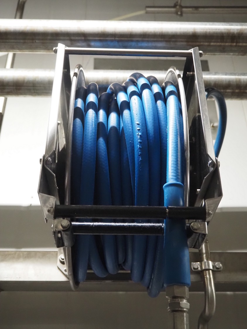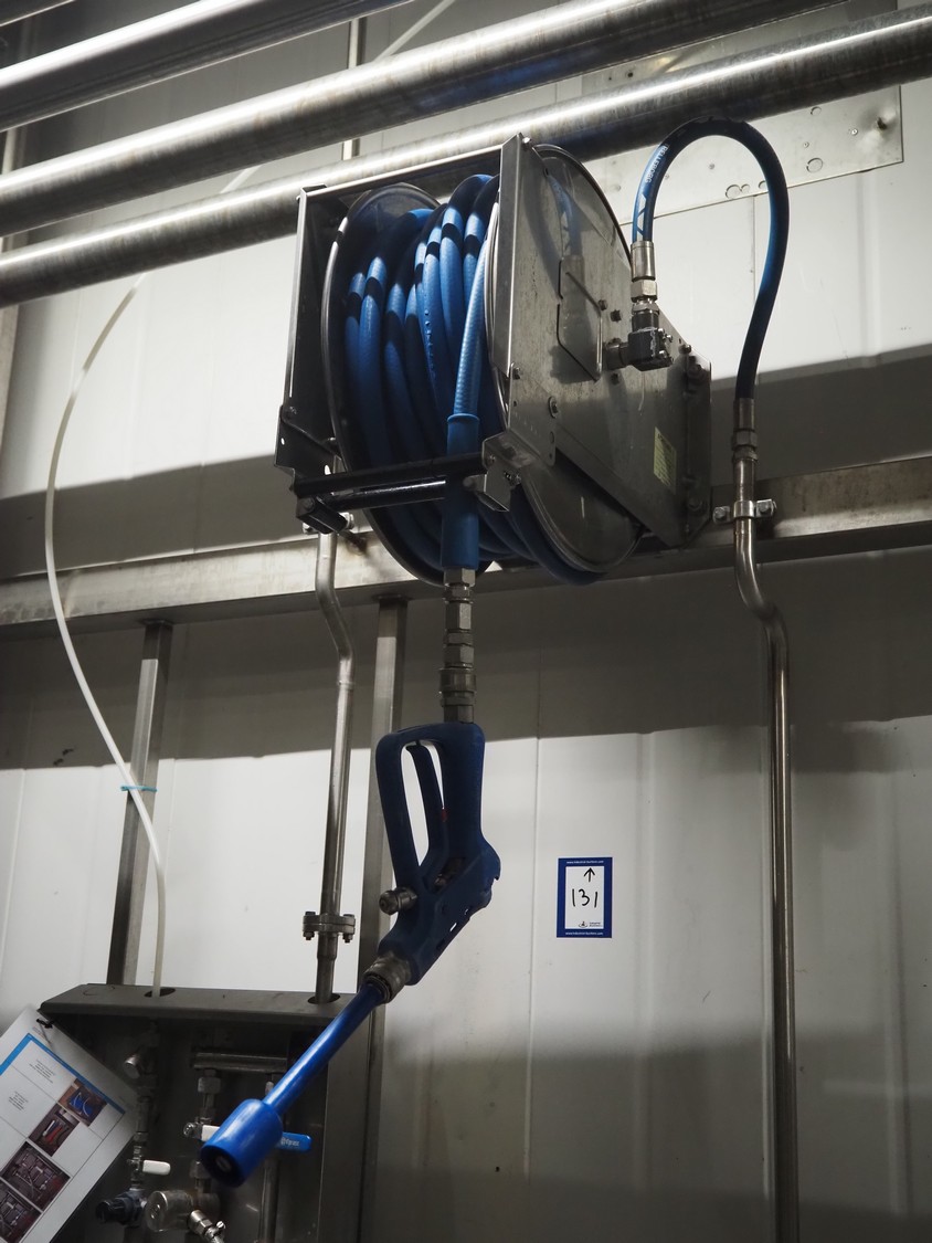 Elpress s/s hose reel with plastic hose and spray pistol, type: EHT 25, serial number: 087260, year of construction: 2010, dimensions: 550 mm x 320 mm x 600 mm.