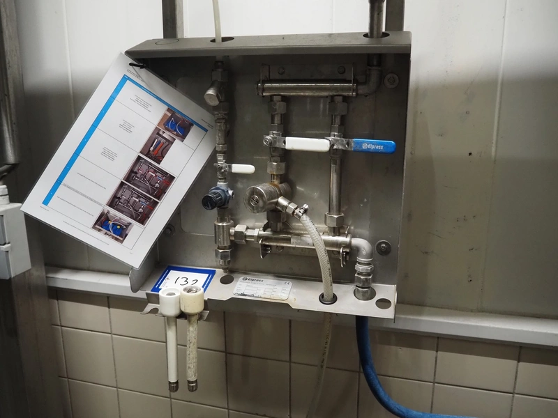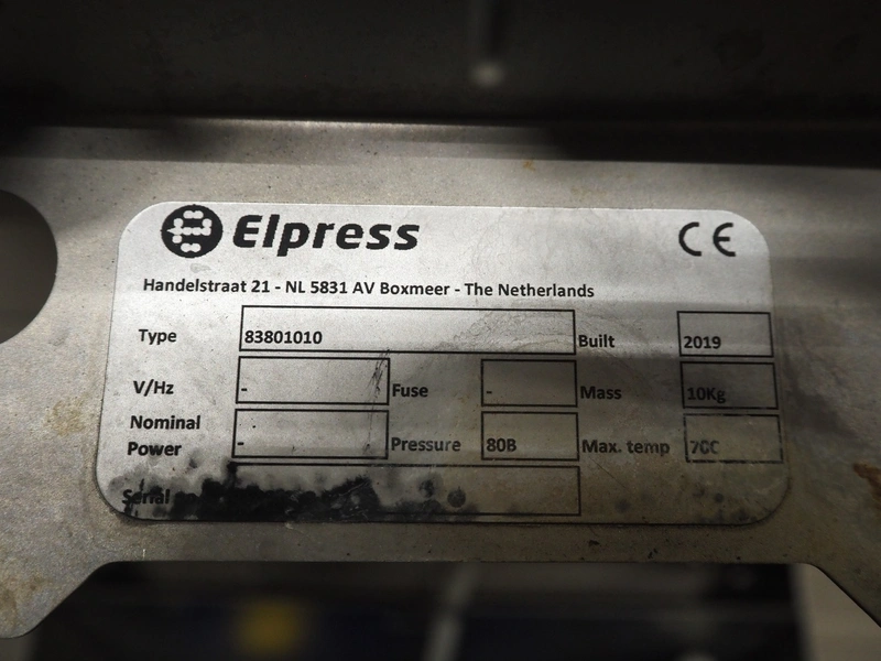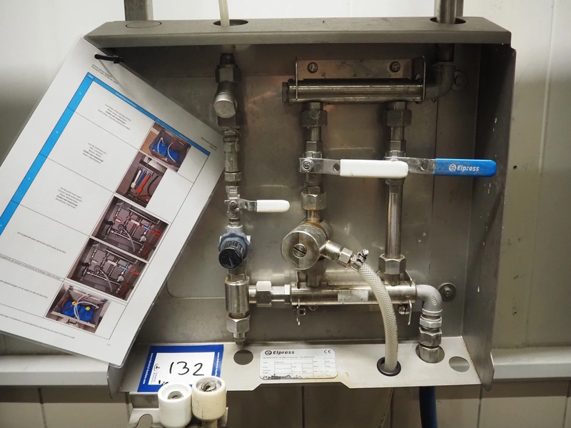 Elpress soap mixing station, type: 83801010, year of construction: 2019, pressure: 80 bar, maximum temperature: 70°C, dimensions: 100 mm x 400 mm x 450 mm, 430 mm x 520 mm x 600 mm.