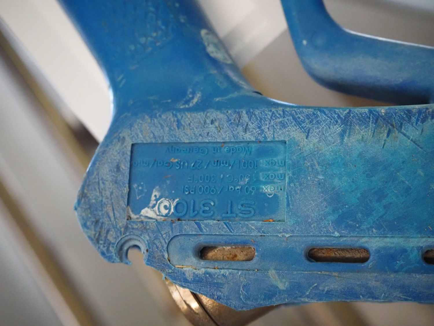 Elpress s/s hose reel with plastic hose and spray pistol, type: EHR25/35, serial number: 15 2015, dimensions: 550 mm x 320 mm x 600 mm.