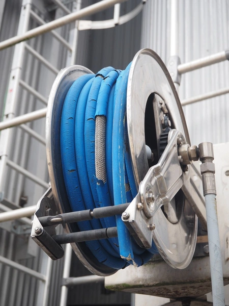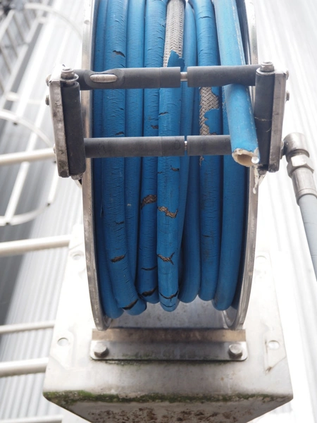 Elpress s/s hose reel with plastic hose, dimensions: 460 mm x 250 mm x 500 mm.