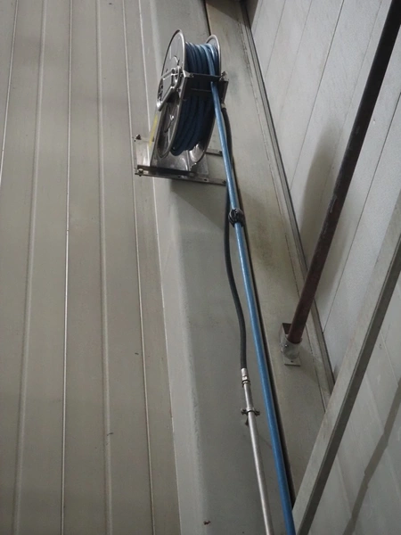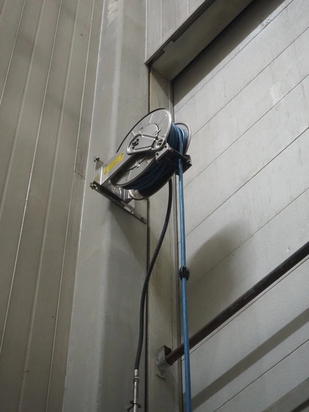 Elpress s/s hose reel with plastic hose and spray pistol, dimensions: 460 mm x 250 mm x 500 mm.