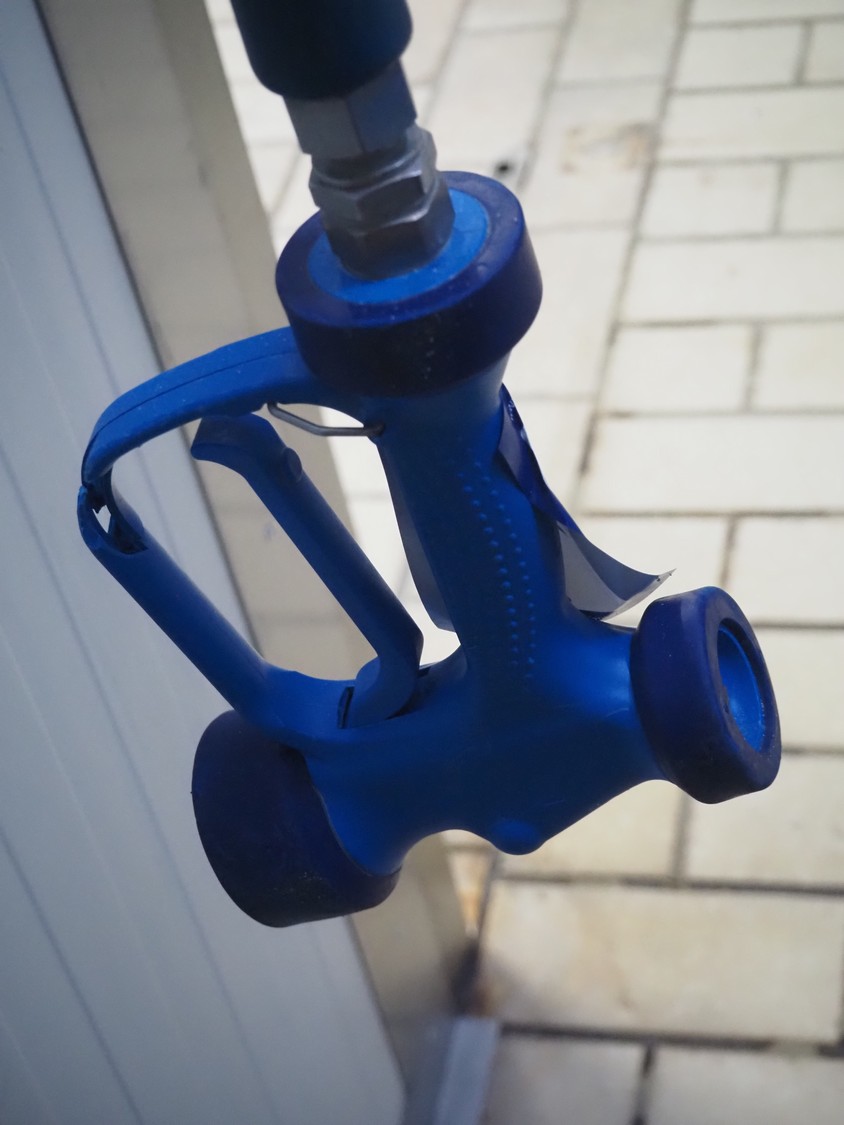 Elpress s/s hose reel with plastic hose and spray pistol, dimensions: 460 mm x 250 mm x 500 mm.