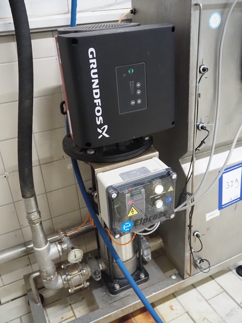 Elpress high-pressure cleaning system, type: 83303004-A, serial number: 32184, year of construction: 2019, 400 V, 3 Ph, 50 Hz, 11 kW, maximum temperature: 70 °C, weight: 220 kg, Grundfos circulation pump, type: CRIE10-9 JN-P-A-E-HQQE, 11.0 kW, 9.0 m³ per hour, dimensions: 500 mm x 1200 mm x 1500 mm.