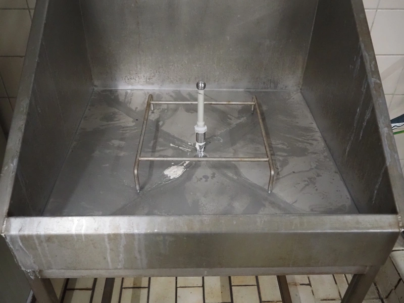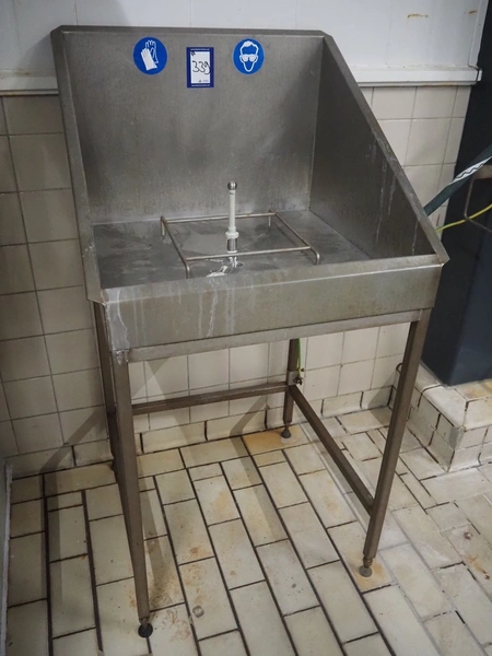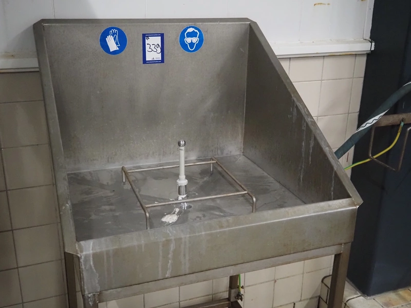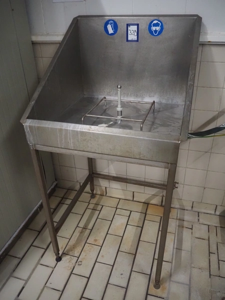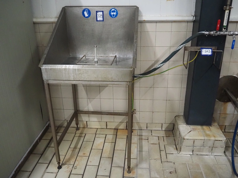 S/s rinsing tub with s/s hose reel, dimensions: 700 mm x 760 mm x 1430 mm.