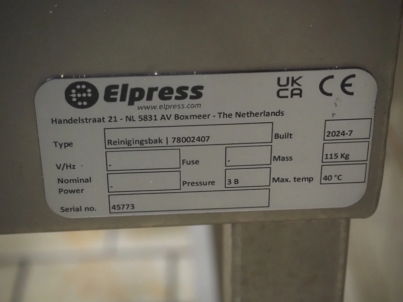 Elpress s/s cleaning tub with 2 brushes, type: Reinigingsbak | 78002407, serial number: 45773, year of construction: 2024, weight: 115 kg, dimensions: 580 mm x 1250 mm x 980 mm.