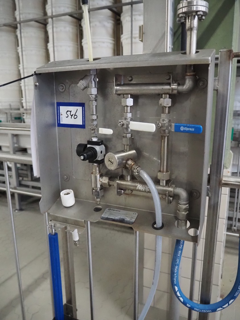 Elpress soap mixing station, type: 83801010, year of construction: 2019, pressure: 80 bar, maximum temperature: 70°C, dimensions: 100 mm x 400 mm x 450 mm, 430 mm x 520 mm x 600 mm.