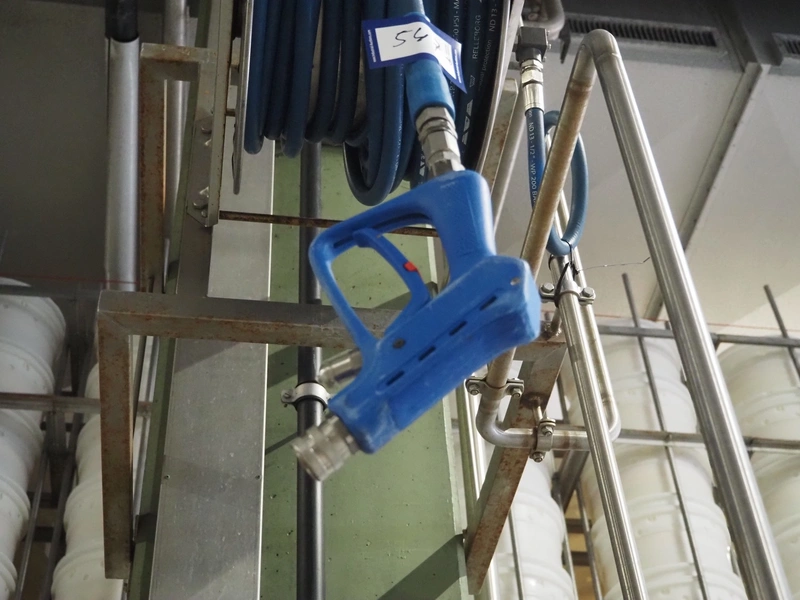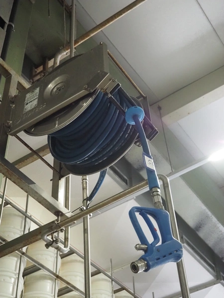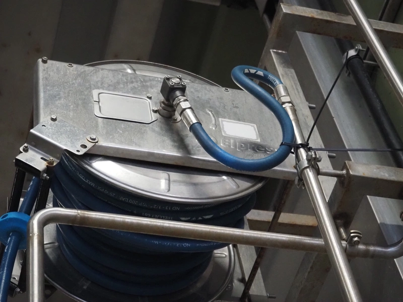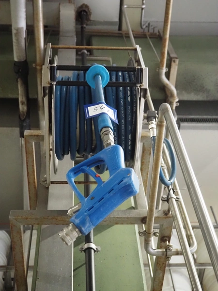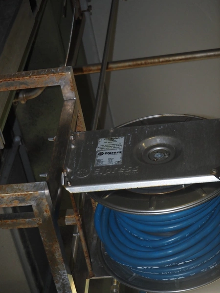 Elpress s/s hose reel with plastic hose and spray pistol, dimensions: 550 mm x 320 mm x 600 mm.
