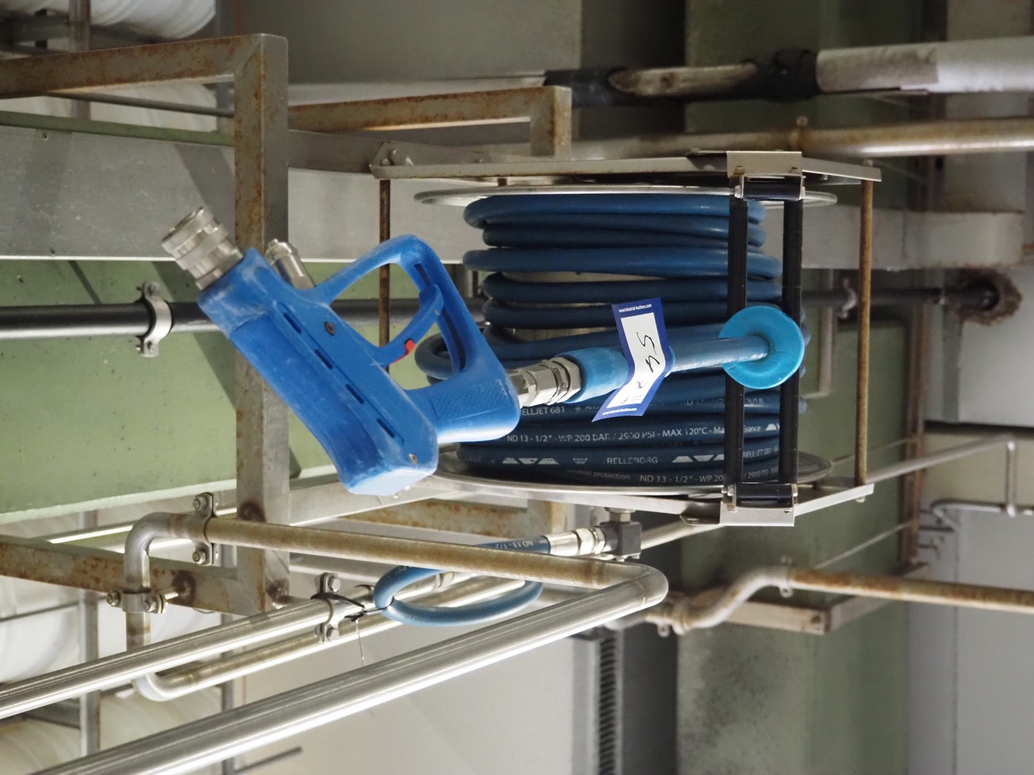 Elpress s/s hose reel with plastic hose and spray pistol, dimensions: 550 mm x 320 mm x 600 mm.