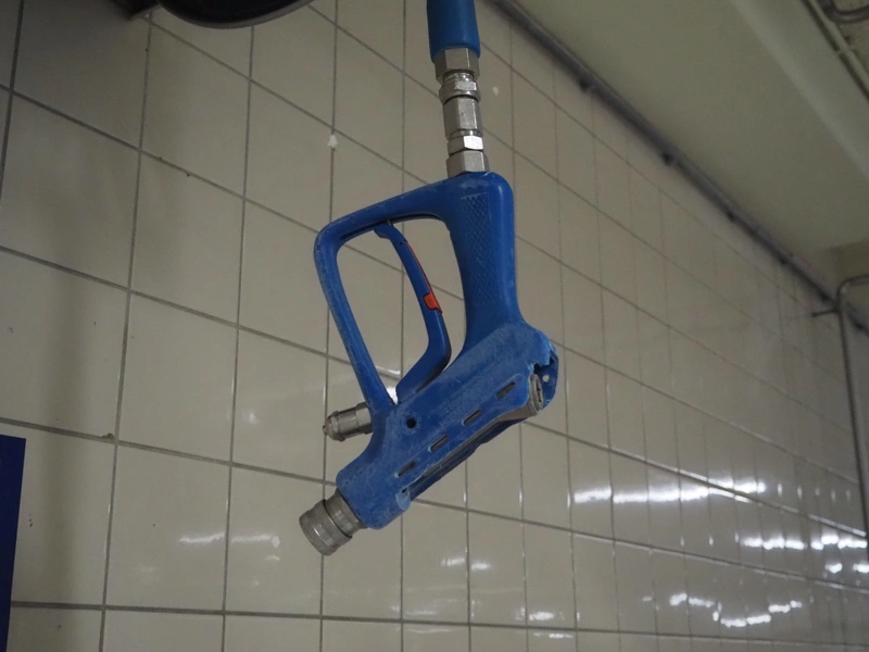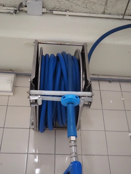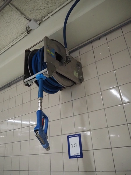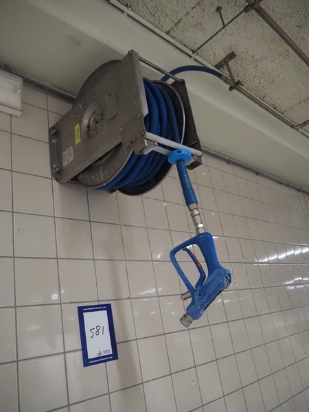 Elpress s/s hose reel with plastic hose and spray pistol, type: EHT 25, serial number: 037226, year of construction: 2002, dimensions: 550 mm x 320 mm x 600 mm.