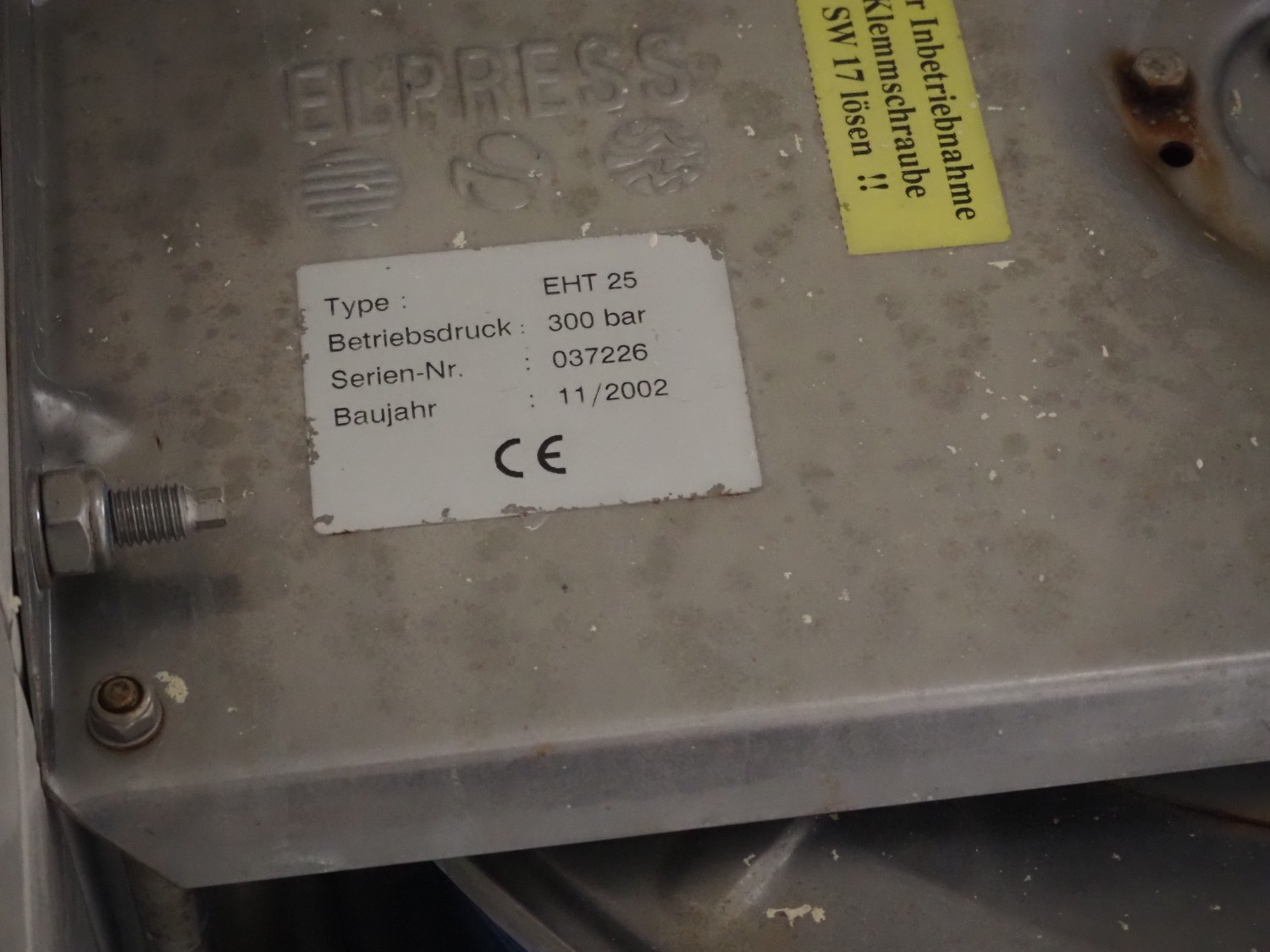 Elpress s/s hose reel with plastic hose and spray pistol, type: EHT 25, serial number: 037226, year of construction: 2002, dimensions: 550 mm x 320 mm x 600 mm.