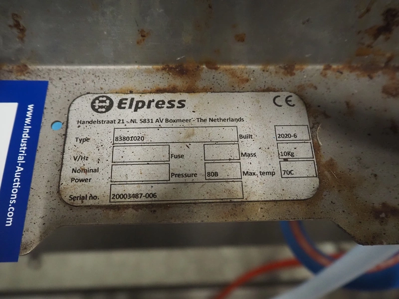 Elpress foam mixing station, type: 83801020, serial number: 20003487-006, year of construction: 2020-6, dimensions: 450 mm x 150 mm x 500 mm, including s/s dispenser for foam, dimensions: 520 mm x 400 mm x 700 mm.