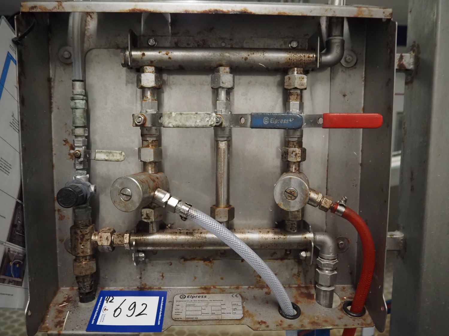 Elpress foam mixing station, type: 83801020, serial number: 20003487-006, year of construction: 2020-6, dimensions: 450 mm x 150 mm x 500 mm, including s/s dispenser for foam, dimensions: 520 mm x 400 mm x 700 mm.