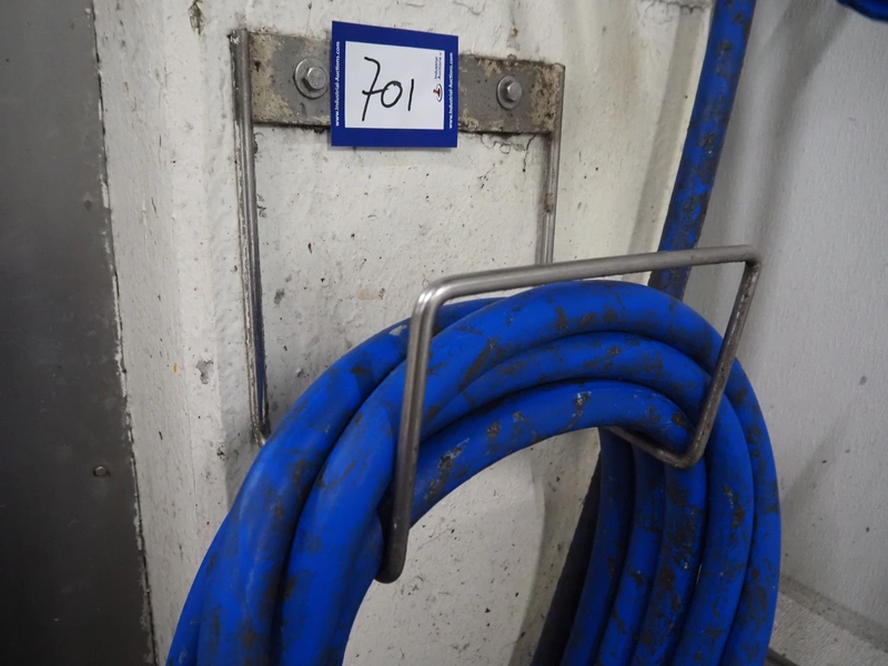 S/s hose reel with hose, dimensions: 300 mm x 200 mm x 300 mm.