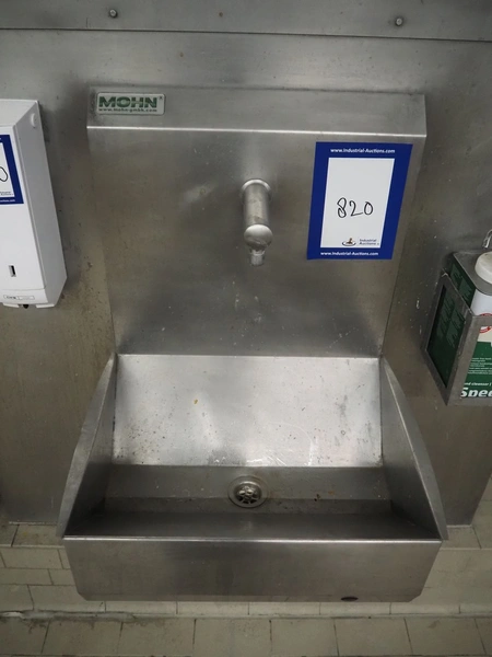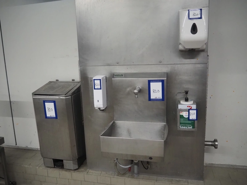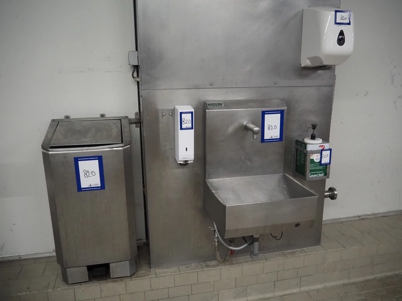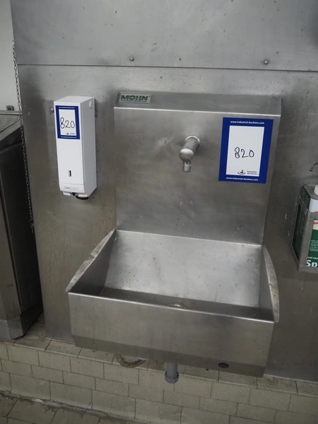 Mohn s/s sink with faucet, sensor operated, s/s waste bin, 2 soap dispensers and 1 paper dispenser, dimensions sink: 550 mm x 450 mm x 670 mm and dimensions waste bag holder: 450 mm x 450 mm x 900 mm.