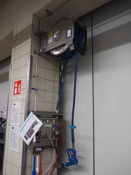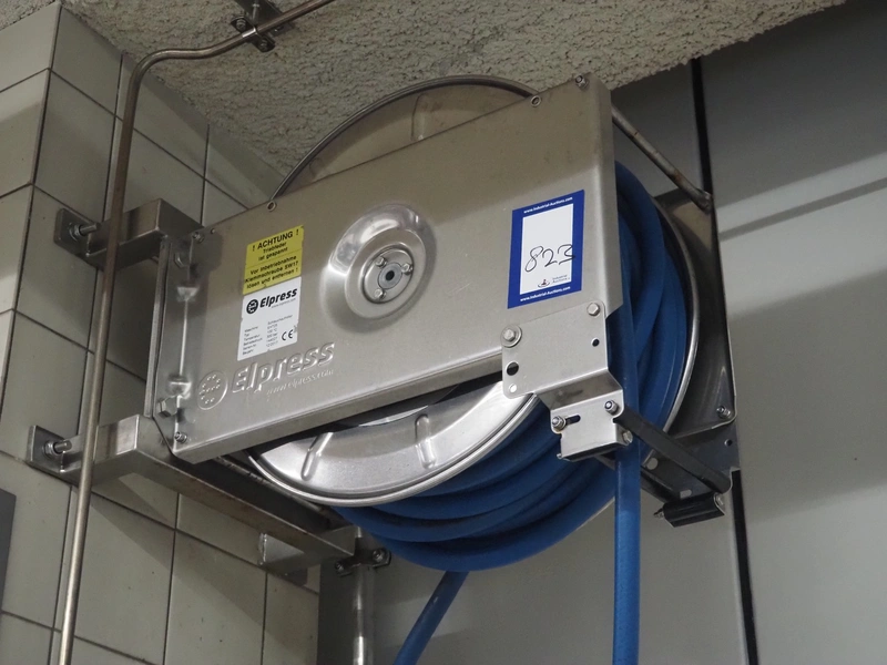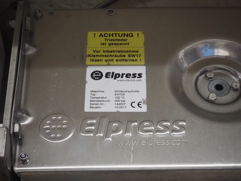 Elpress hose reel with hose and pistol, type: EHT25, serial number: 144027, year of construction: 12/2017, dimensions: 500 mm x 350 mm x 400 mm.