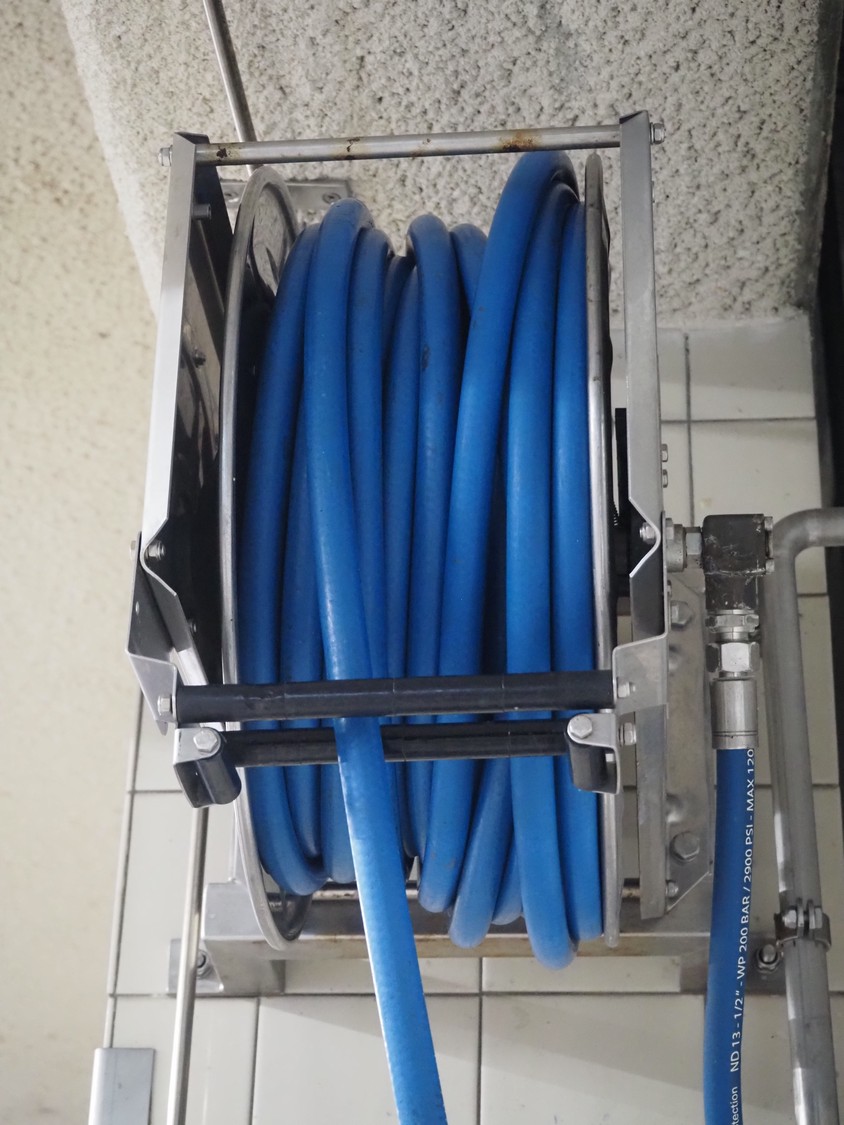 Elpress hose reel with hose and pistol, type: EHT25, serial number: 144027, year of construction: 12/2017, dimensions: 500 mm x 350 mm x 400 mm.