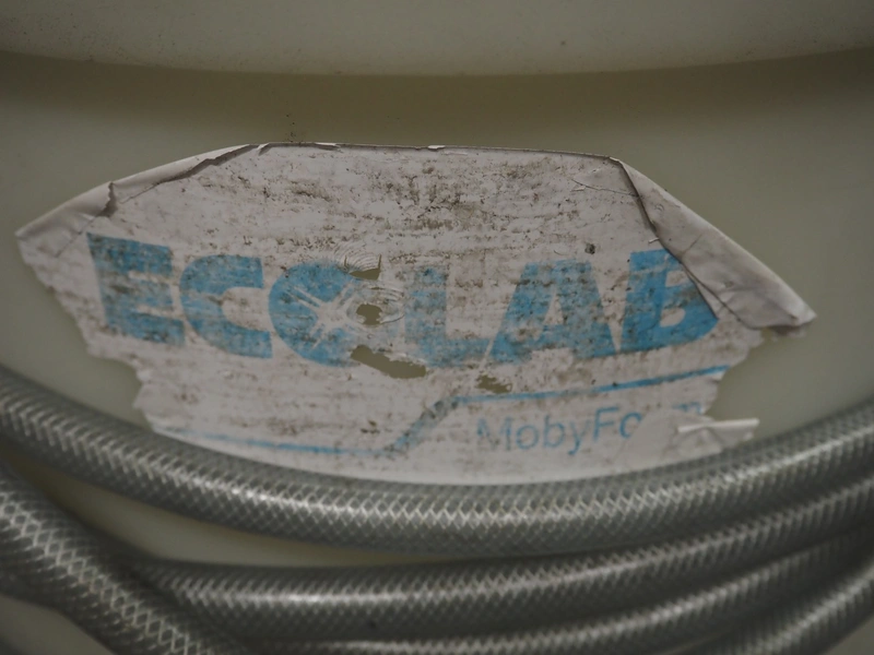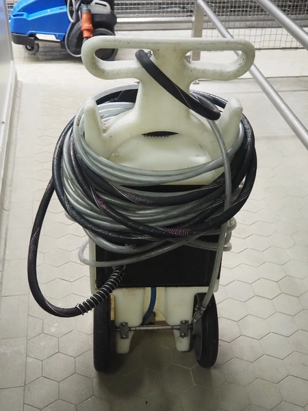 Ecolab mobile plastic pressure vessel, dimensions: 400 mm x 400 mm x 1030 mm.