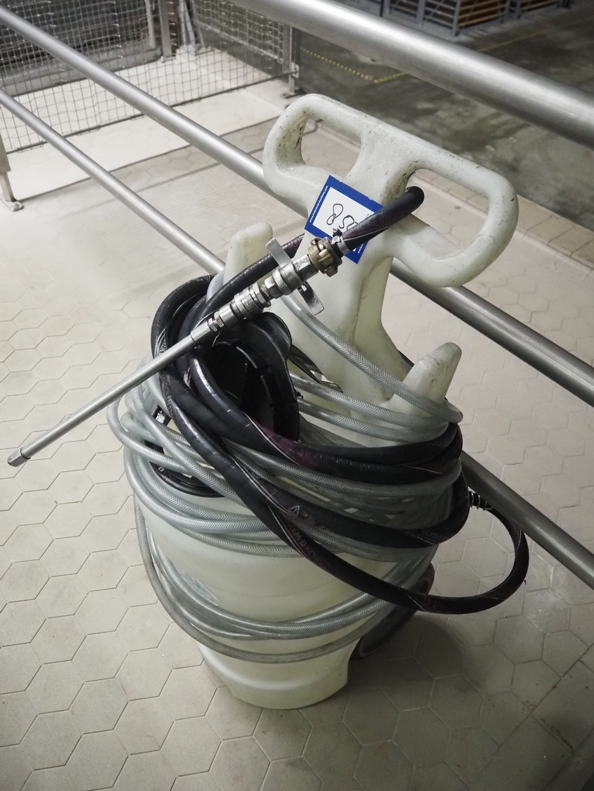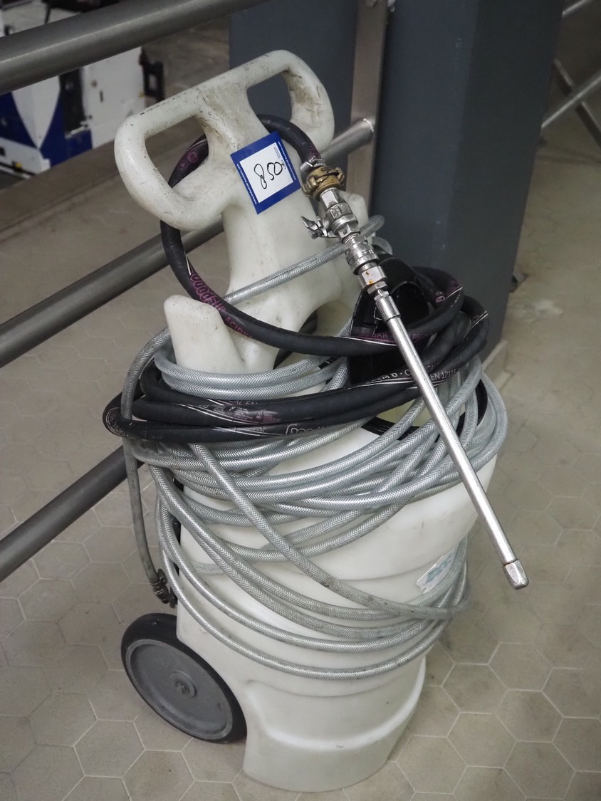 Ecolab mobile plastic pressure vessel, dimensions: 400 mm x 400 mm x 1030 mm.