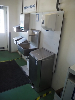 S/s sink with 2 soap dispensers, 1 paper dispenser and 1 waste bin, dimensions: 1330 mm x 400 mm x 850 mm and 470 mm x 400 mm x 950…0 bidsLot is closed -