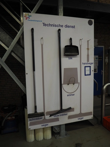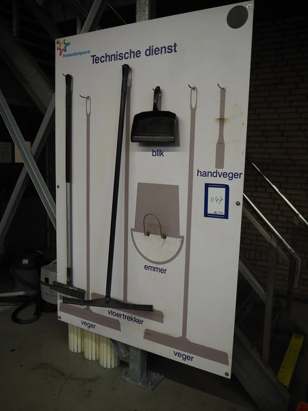 Wall plate with Vikan cleaning equipment, dimensions: 1400 mm x 2100 mm.