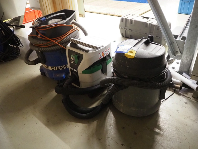 3 vacuum cleaners, dimensions: 450 mm x 400 mm x 550 mm, 300 mm x 320 mm x 450 mm and Ø 350 mm x 500 mm.