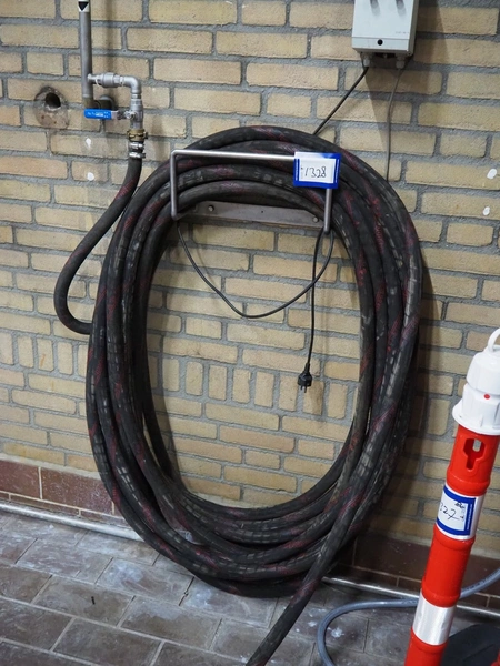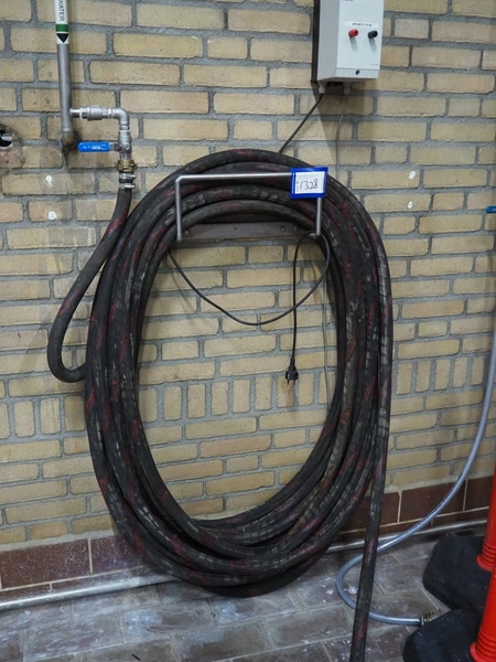 S/s hose reel with plastic hose, dimensions: 150 mm x 380 mm.