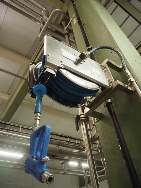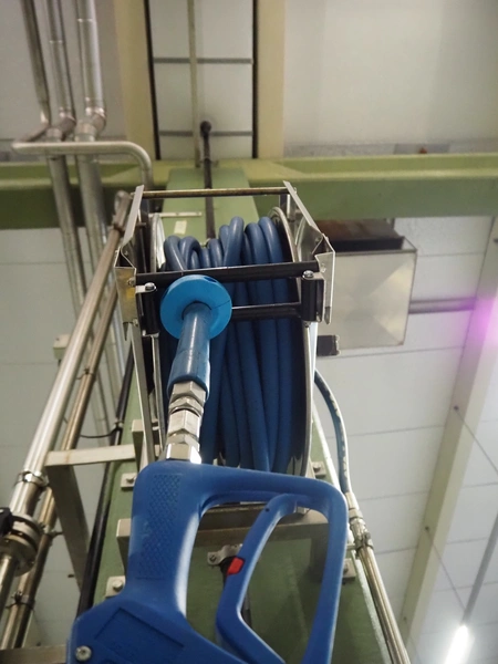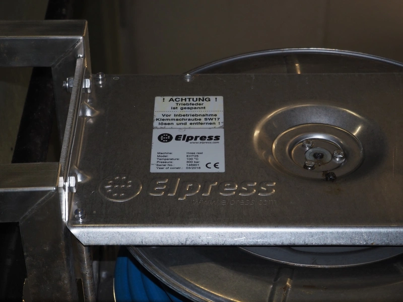 Elpress s/s hose reel with plastic hose and spray pistol, type: EHT 25, serial number: 146901, year of construction: 2018, dimensions: 550 mm x 320 mm x 600 mm.