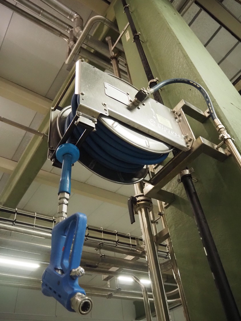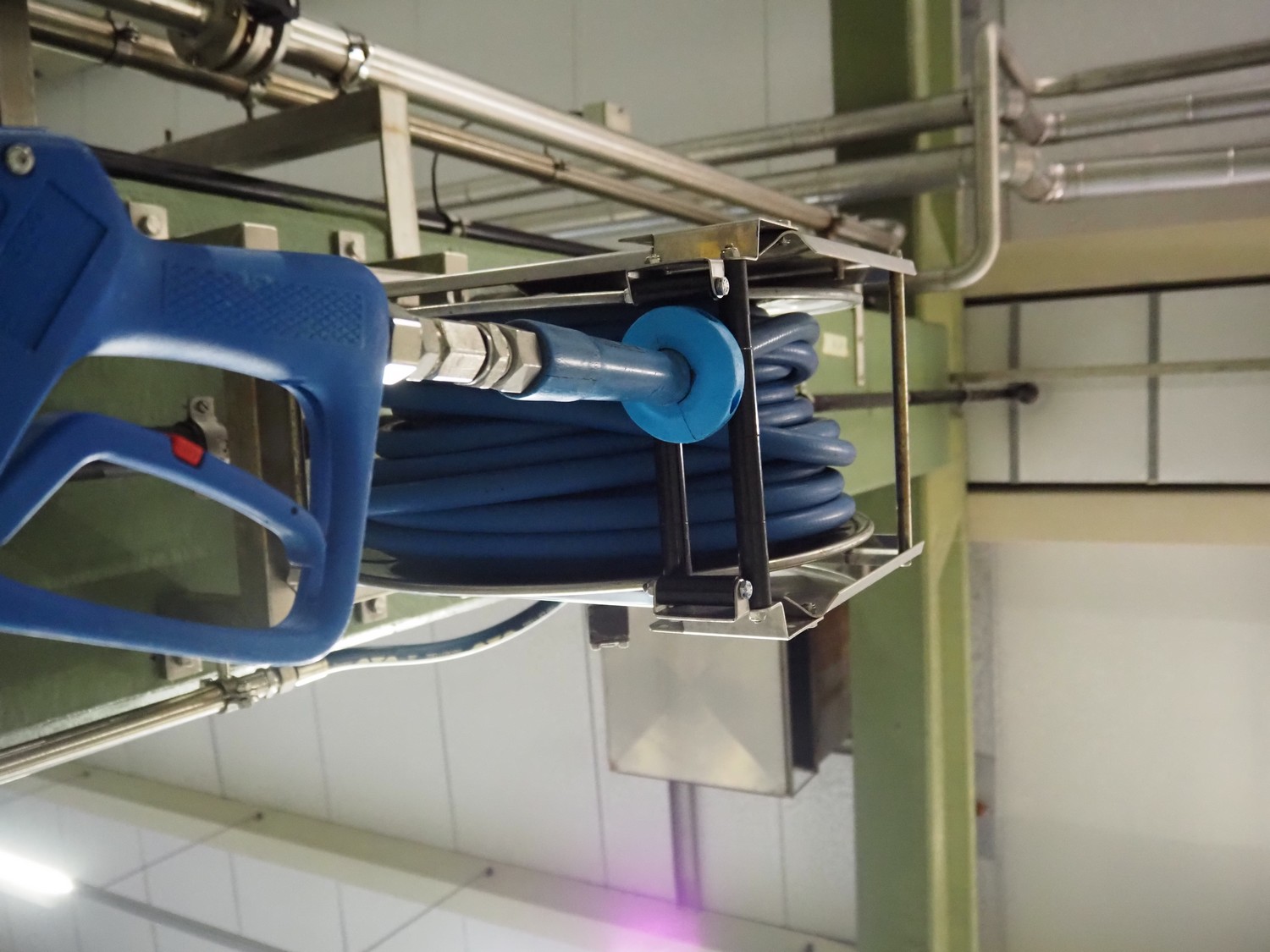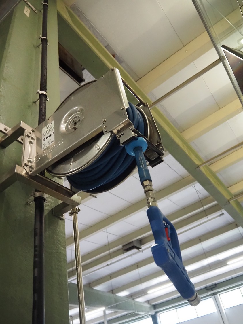 Elpress s/s hose reel with plastic hose and spray pistol, type: EHT 25, serial number: 146901, year of construction: 2018, dimensions: 550 mm x 320 mm x 600 mm.