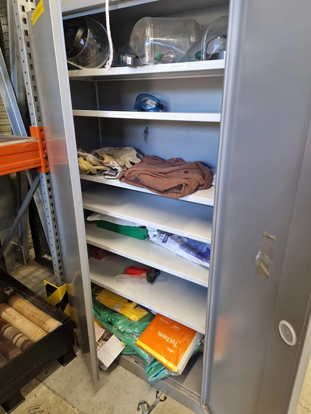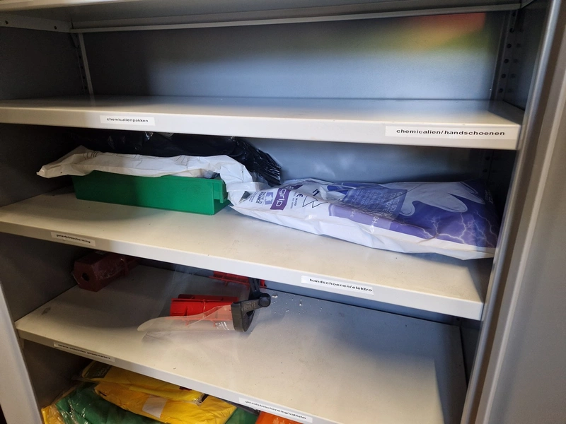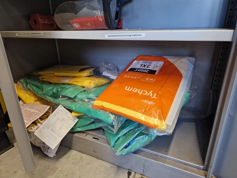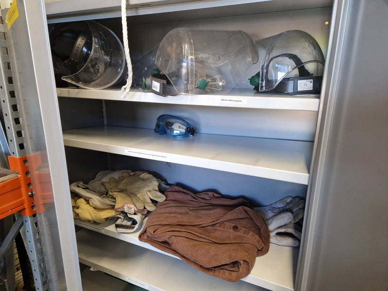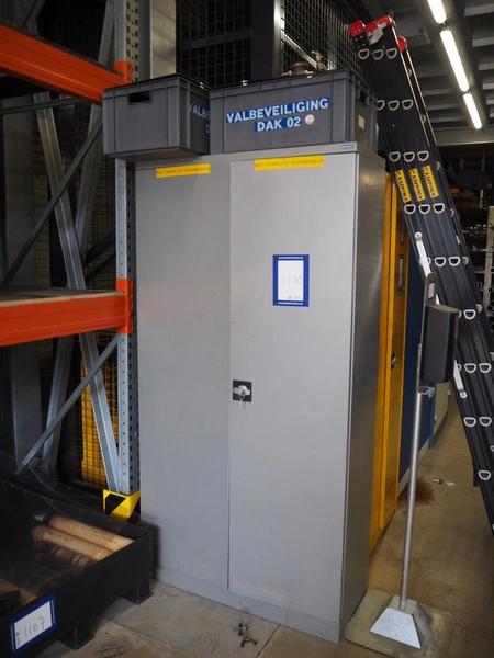 Overtoom steel cabinet with protective gear, dimensions: 1000 mm x 420 mm x 1950 mm.