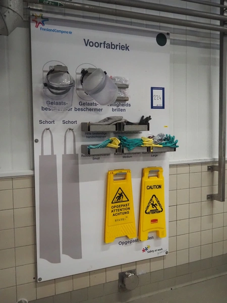 Wooden frame with safety equipment, dimensions: 1250 mm x 2100 mm.